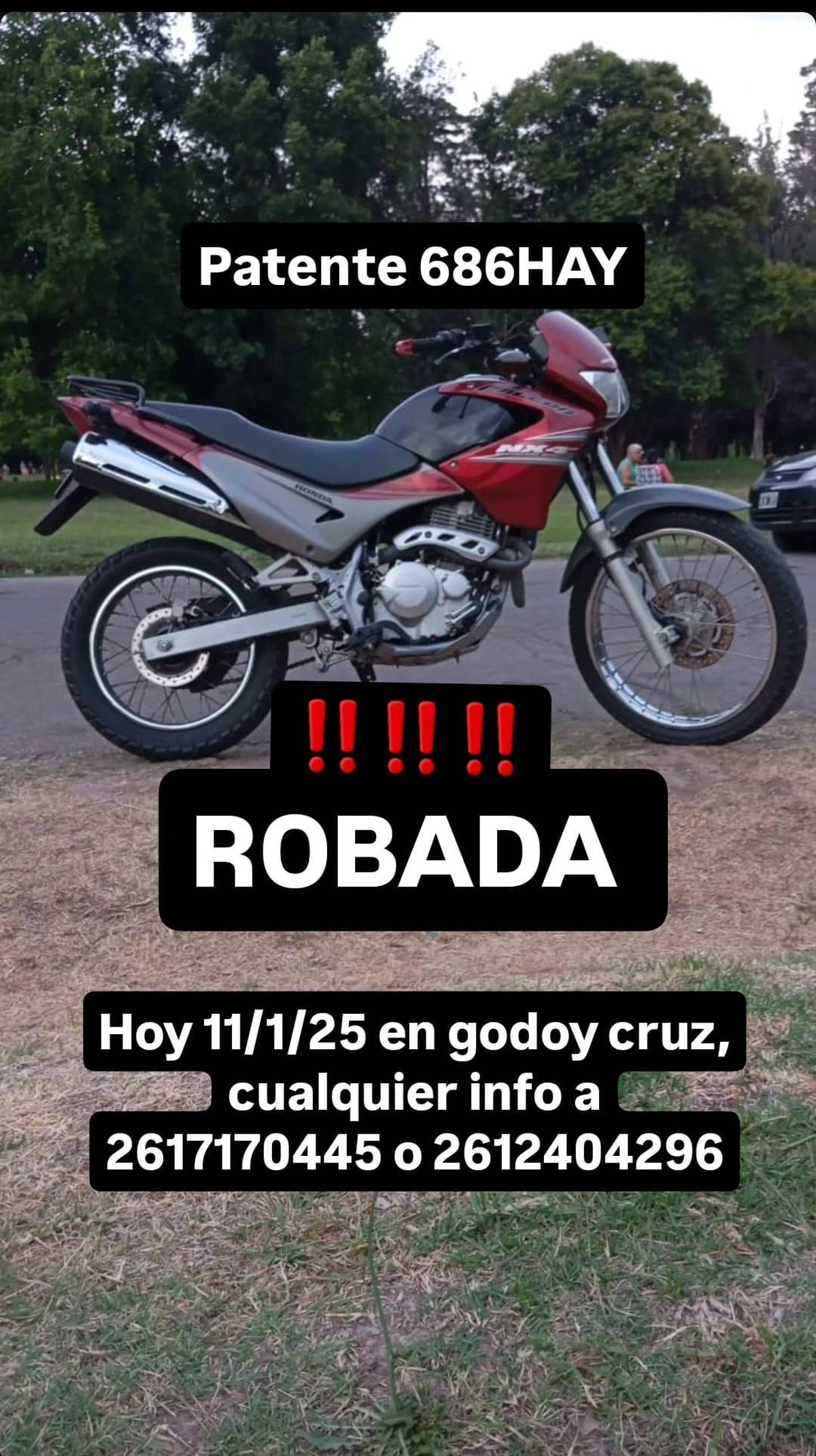 Todo quedó registrado en las cámaras de seguridad de un edificio en Godoy Cruz. Una moto que había sido estacionada en la vereda desapareció por el accionar de dos delincuentes en un trabajo quirúrgico de inteligencia criminal. En pocos minutos le dieron arranque y se la robaron.El hecho ocurrió el viernes pasado a las 17.