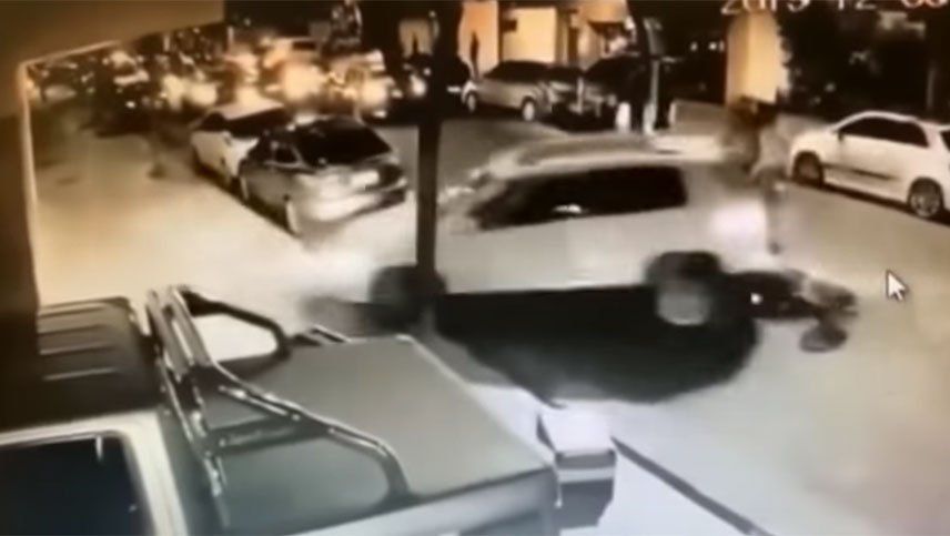 La extraña y violenta secuencia quedó registrada por cámaras de seguridad. En el video se puede ver cómo el inicio de un intento de asalto deriva en una embestida del vehículo a un motociclista y un posterior choque, en medio de la fuga de los delincuentes.