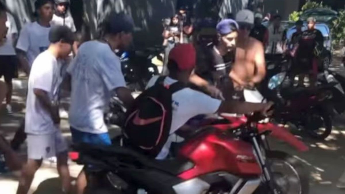 Sus amigos, por ejemplo, reaccionaron agarrando a las patadas a una moto, a la vez que esta era acelerada.