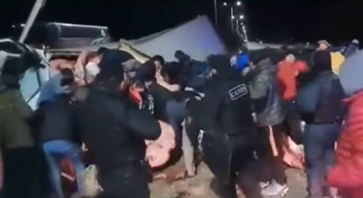 Video: volcó un camión con carne camino a Mendoza, la gente lo saqueó y hubo tiros de la policía