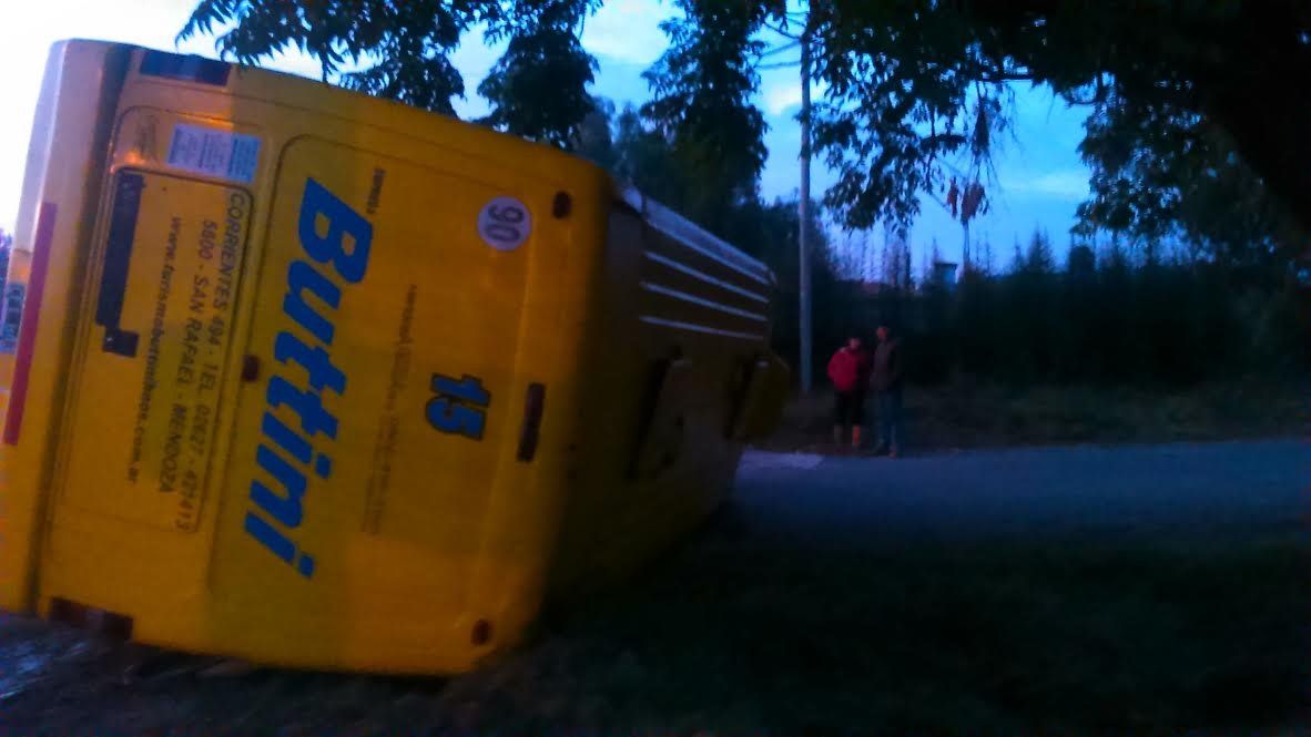 Un micro de la línea Buttini volcó en la mañana de este martes tras chocar con un Chrevrolet Corsa conducido por un penitenciario que viajaba hacia la Cárcel con un compañero para cumplir sus tareas.