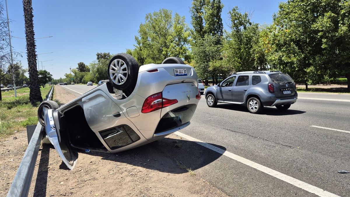 Para evitar el impacto directo contra el camión, la conductora del Renault realizó una maniobra brusca que le hizo perder el control del rodado. El auto terminó volcando y dando varias vueltas sobre el asfalto. Quedó con las ruedas hacia arriba y destruido a la vera del Acceso Sur.