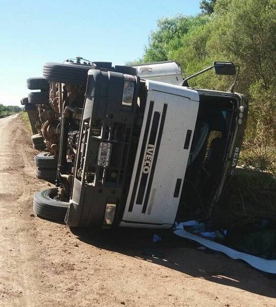 Un camión Iveco con semirremolque de la empresa San Fernando SA que tenía como destino el frigorífico Paladini de Rosario, conducido por un hombre de 31 años, se accidentó en un camino vecinal de distrito Montoya, departamento Victoria.