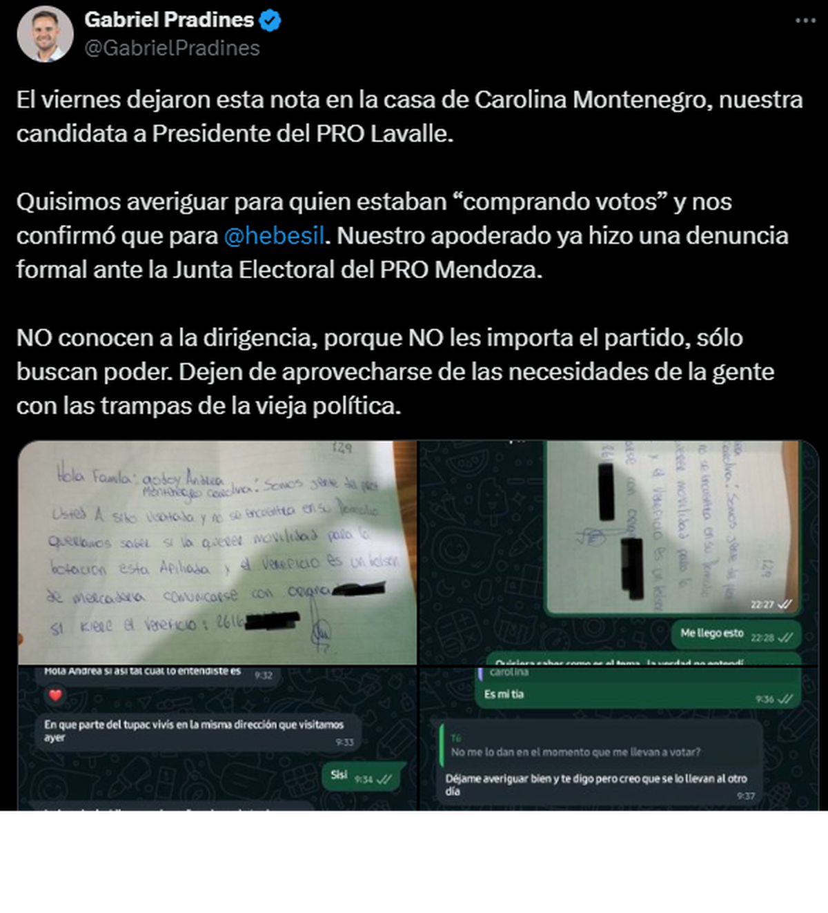 En la asamblea también se analizó la última denuncia de Pradines contra la lista de Casado por "clientelismo". Según acusan con unas capturas de chats, la lista Amarilla contactó afiliados para "comprar" el voto a cambio de beneficios como bolsones de mercadería.