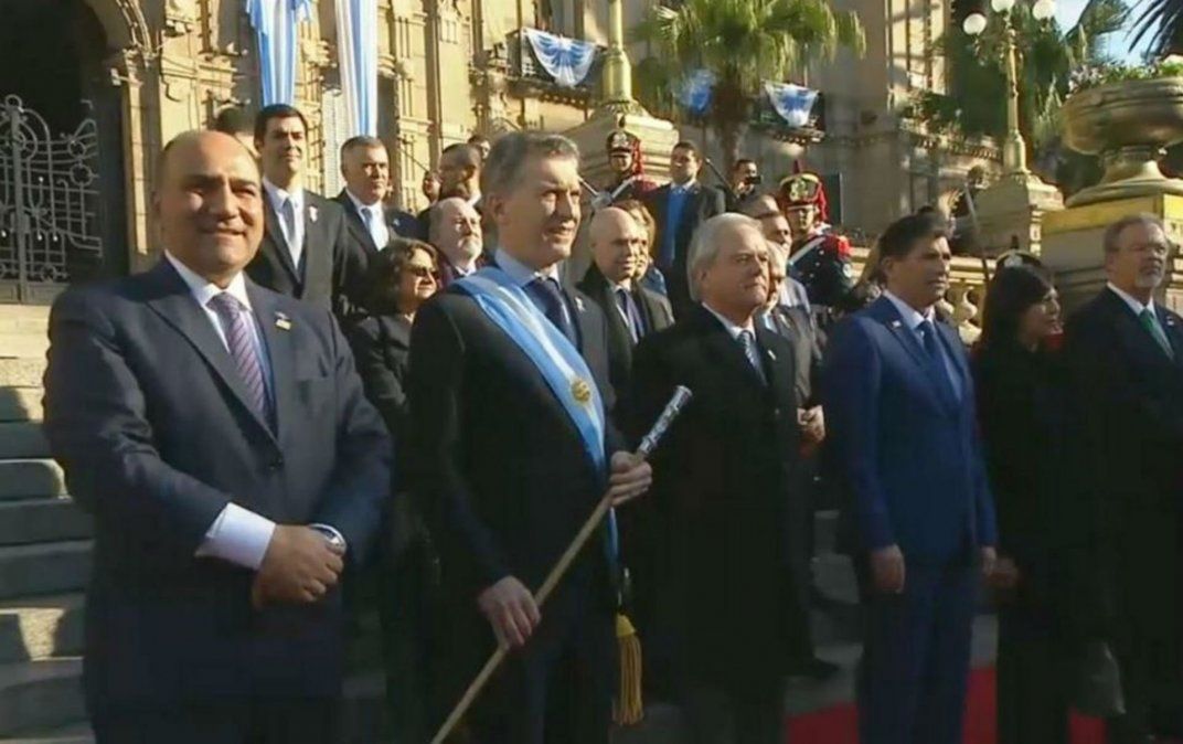 El presidente Mauricio Macri encabezaba hoy, acompañado por su esposa Juliana Awada, a la grey que participaba del Tedeum en la catedral de Tucumán, en un misa oficiada por el arzobispo Alberto Zecca. Frente a la imagen de la Virgen de la Merced y la réplica del cuadro La Anunciación, Macri, su esposa y varios funcionarios del gabinete entonaron estrofas del tradicional cántico de la iglesia argentina "Cristo Jesús", al inicio de la ceremonia.