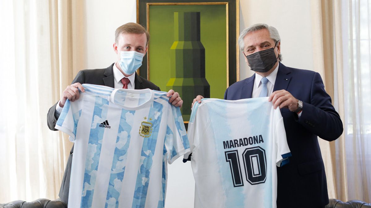 El presidente Alberto Fernández recibió este viernes al asesor de Seguridad Nacional del gobierno de Joe Biden, Jake Sullivan, con el objetivo de fortalecer las relaciones bilaterales en base al tratamiento de cuestiones prioritarias para ambos países. A lo largo de su charla con el funcionario extranjero –quien es el principal asesor en política internacional y a cargo de coordinar la política exterior de los Estados Unidos- se abordaron distintos temas de interés bilateral como el cuidado del medio ambiente y el cambio climático, la revisión de las instituciones financieras y la lucha contra la pandemia de Covid-19.