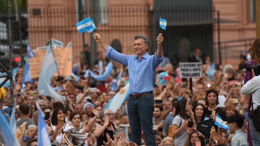 A las 18.30 Macri salió al balcón de Casa Rosada y habló a la concurrencia, ataviada de banderas argentinas y pancartas de apoyo.