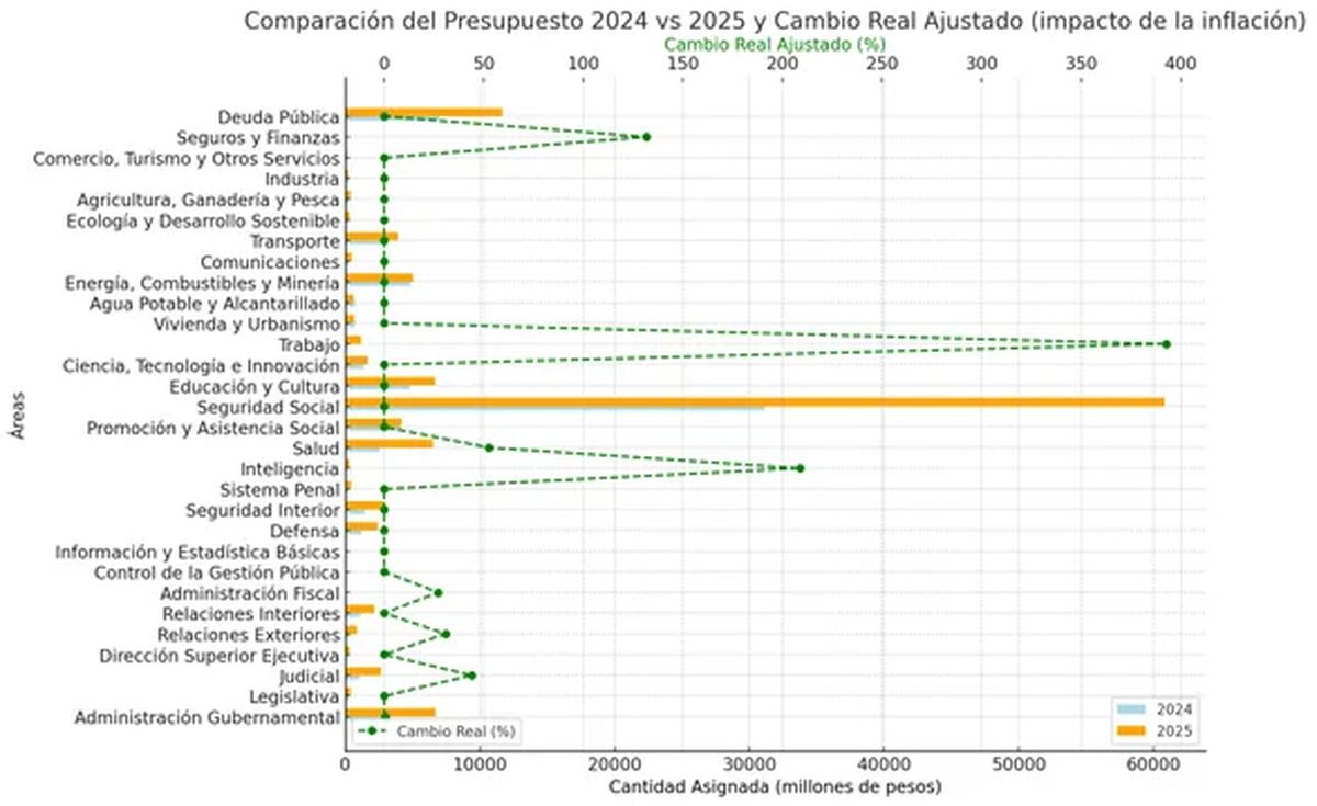 - Relaciones Exteriores: Con un aumento del 30% en términos reales, esta área recibe un impulso considerable, lo que podría estar vinculado a la estrategia de internacionalización del gobierno.
