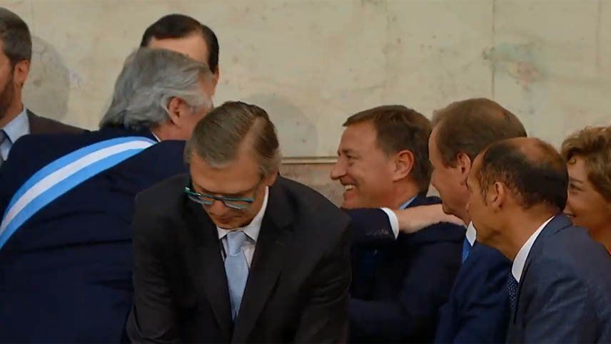 El gobernador Rodolfo Suarez asistió al juramento y asunción del presidente Alberto Fernández y al término de su discurso fue captado por las cámaras cuando se fundía en un abrazo con el mandatario nacional.