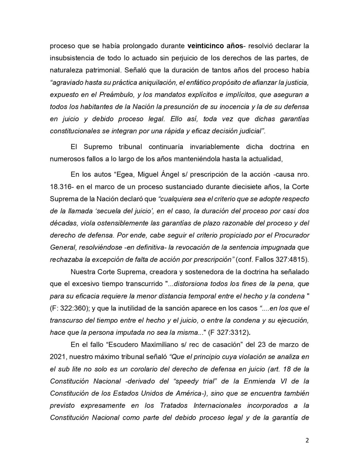 El borrador de la iniciativa que busca sacar de la cárcel a los genocidas de la última dictadura militar expone, por ejemplo, que "la doctrina establece que pasado un tiempo excesivo de tramitación de un proceso penal, aun cuando no hubiere operado la prescripción, la acción penal debe entenderse agotada por insubsistencia" y consideran como “inconstitucional la prolongación indefinida de los procesos”. Esto, claro, en favor de los militares condenados por crímenes de lesa humanidad durante la dictadura de 1976.