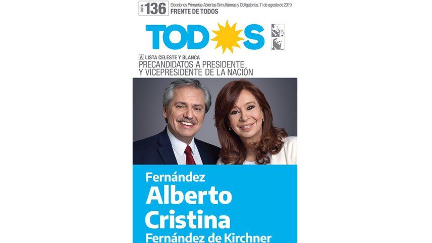 Un detalle particular es que se resaltan los nombres de pila de ambos candidatos, de forma que se lee "Fernández Alberto - Cristina Fernández de Kirchner.