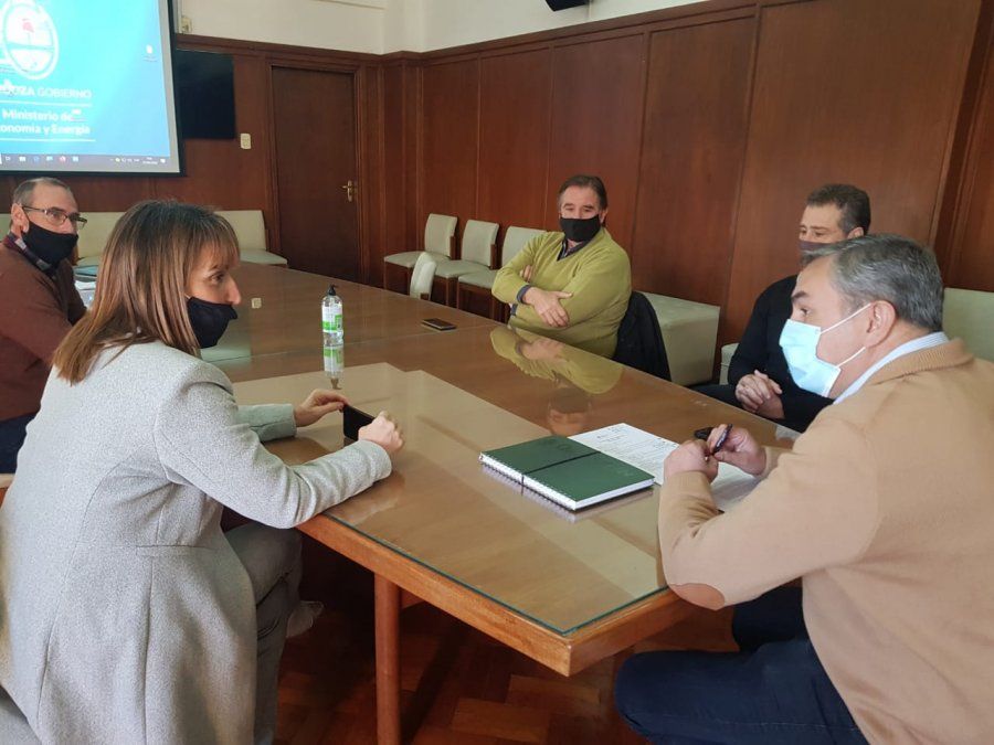 El titular de la cartera económica de la provincia, Enrique Vaquié, junto al subsecretario de Industria y Comercio, Alejandro Zlotolow, y la diputada mendocina María José Sanz, recibió a Carlos Torelli, vicepresidente primero de la Cámara de Comercio de San Rafael y Daniel Giordano, miembro de la específica de ganadería y ex presidente de la institución representativa sureña.