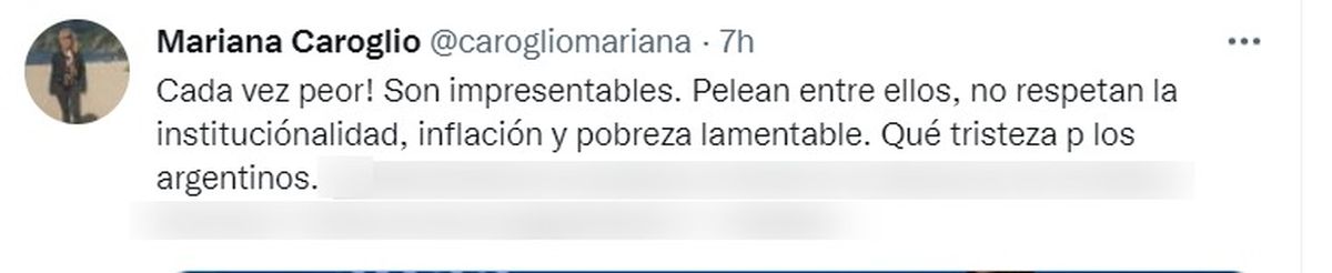 Por otro lado, la exsenadora Mariana Caroglio (UCR) recordó la indignación que expresaron algunos legisladores europeos ante lo ocurrido y luego escribió: