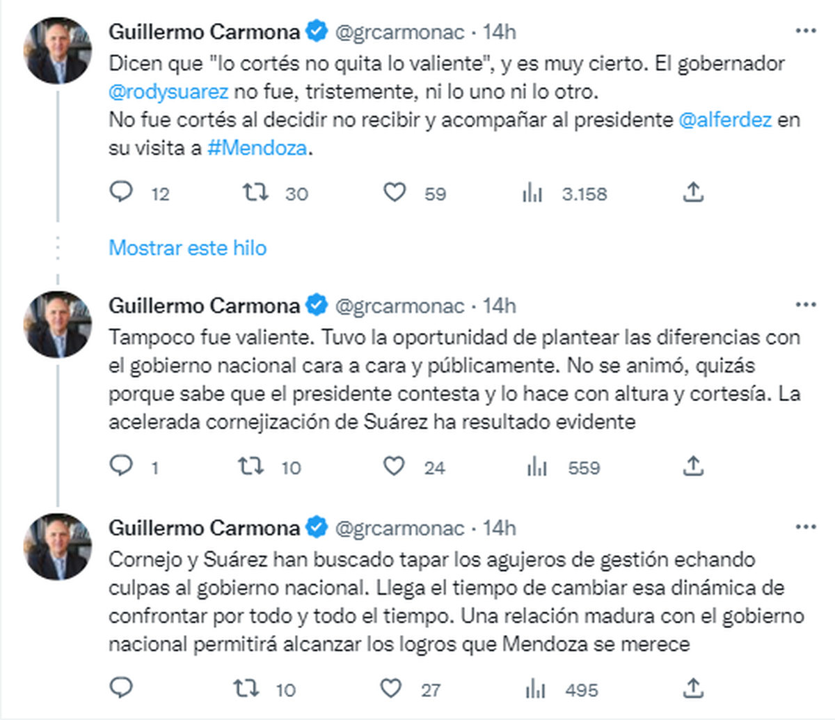 ►TE PUEDE INTERESAR: Análisis y opinión: El techo que no le permite crecer a Guillermo Carmona, ese raro peronista mendocino