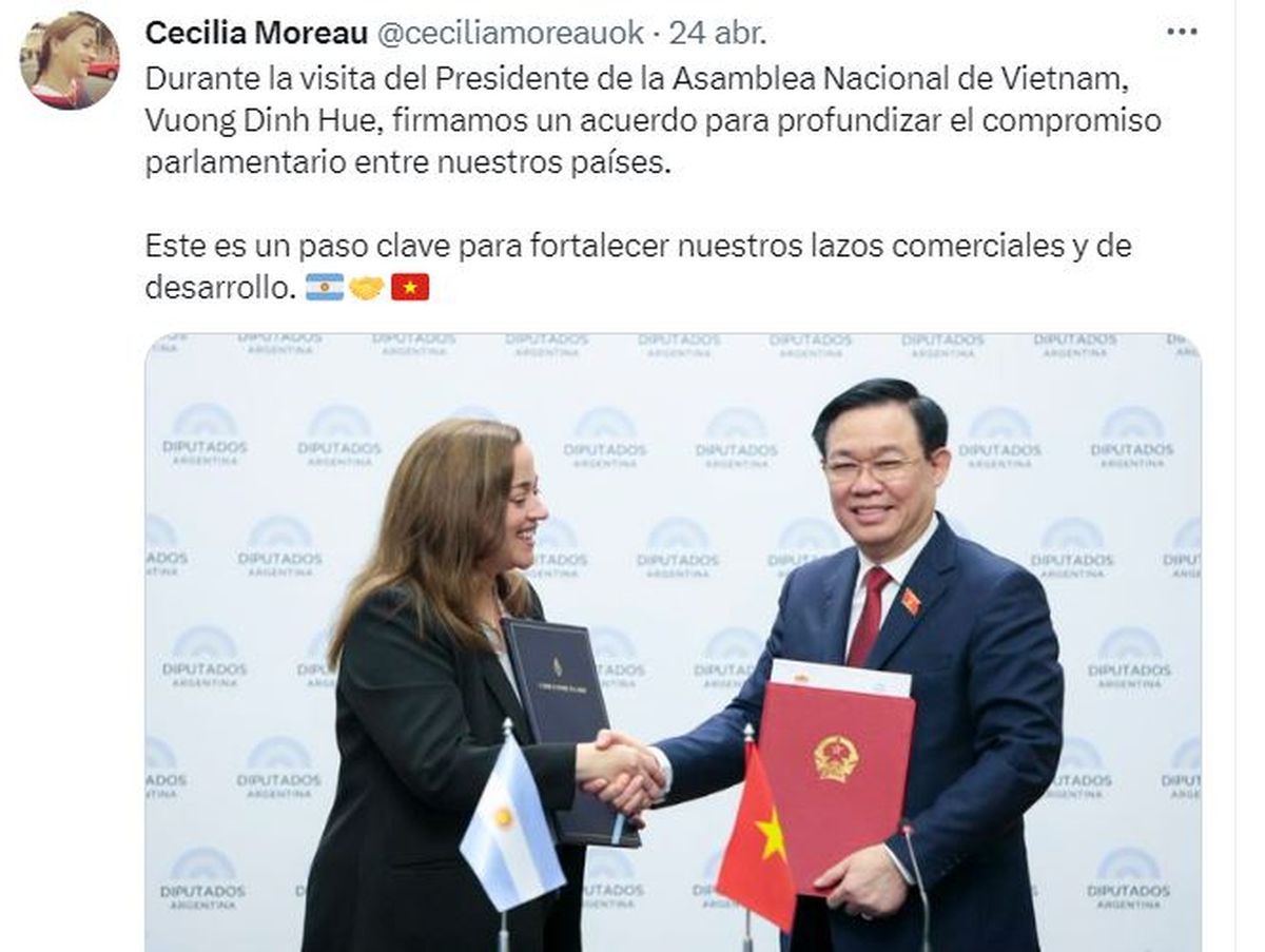 La Presidenta de la Cámara de Diputados, Cecilia Moreau, recibió a su par de la Asamblea Nacional de la Republica Socialista de Vietnam, Dinh Hue Vuong, con quien firmó un acuerdo entre ambas instituciones para profundizar el compromiso parlamentario entre los dos países.