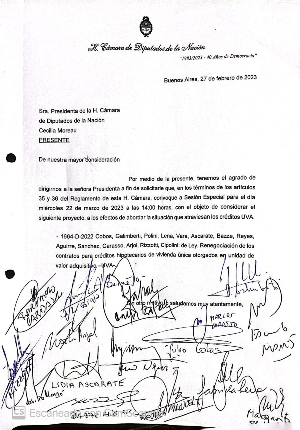Este lunes, en la Cámara de Diputados de la Nación, legisladores y legisladoras de diferentes bloques firmaron un pedido para solicitar una sesión especial para el próximo miércoles 22 de marzo, destinada a abordar la temática de los créditos UVA. El mendocino Julio Cobos es uno de los impulsores de la idea.