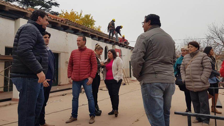 La comitiva que visitó el edificio pudo apreciar los avances en la recuperación de dos salones y sus galerías que la obra actual lleva adelante. En este primera etapa, el objetivo es ampliar el espacio que se destina al aula de apoyo pedagógico para alumnos primarios y la sala del jardín de infantes, que hoy recibe unos 60 chicos diarios.