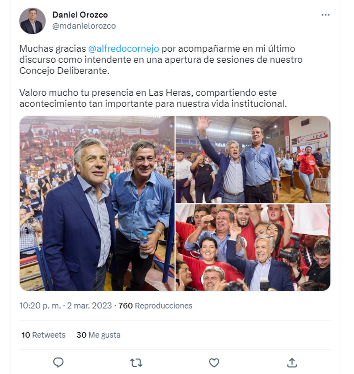 Con ese respaldo político, Orozco se envalentonó y vaticinó que luego de que deje esa intendencia lo van a recordar "por mejorar y transformar Las Heras; hemos tenido varios logros y estamos orgullosos de representar a este departamento”.