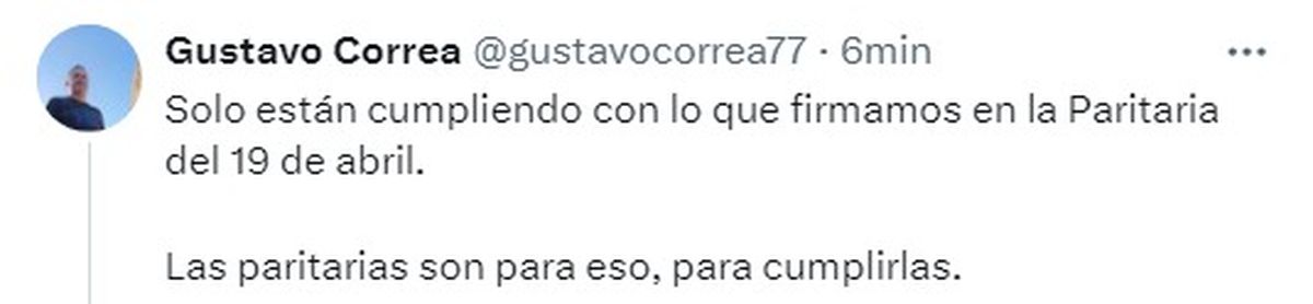 Gustavo Correa, secretario gremial del sindicato, subrayó que sólo se está cumpliendo con lo que se firmó en la paritaria de abril.