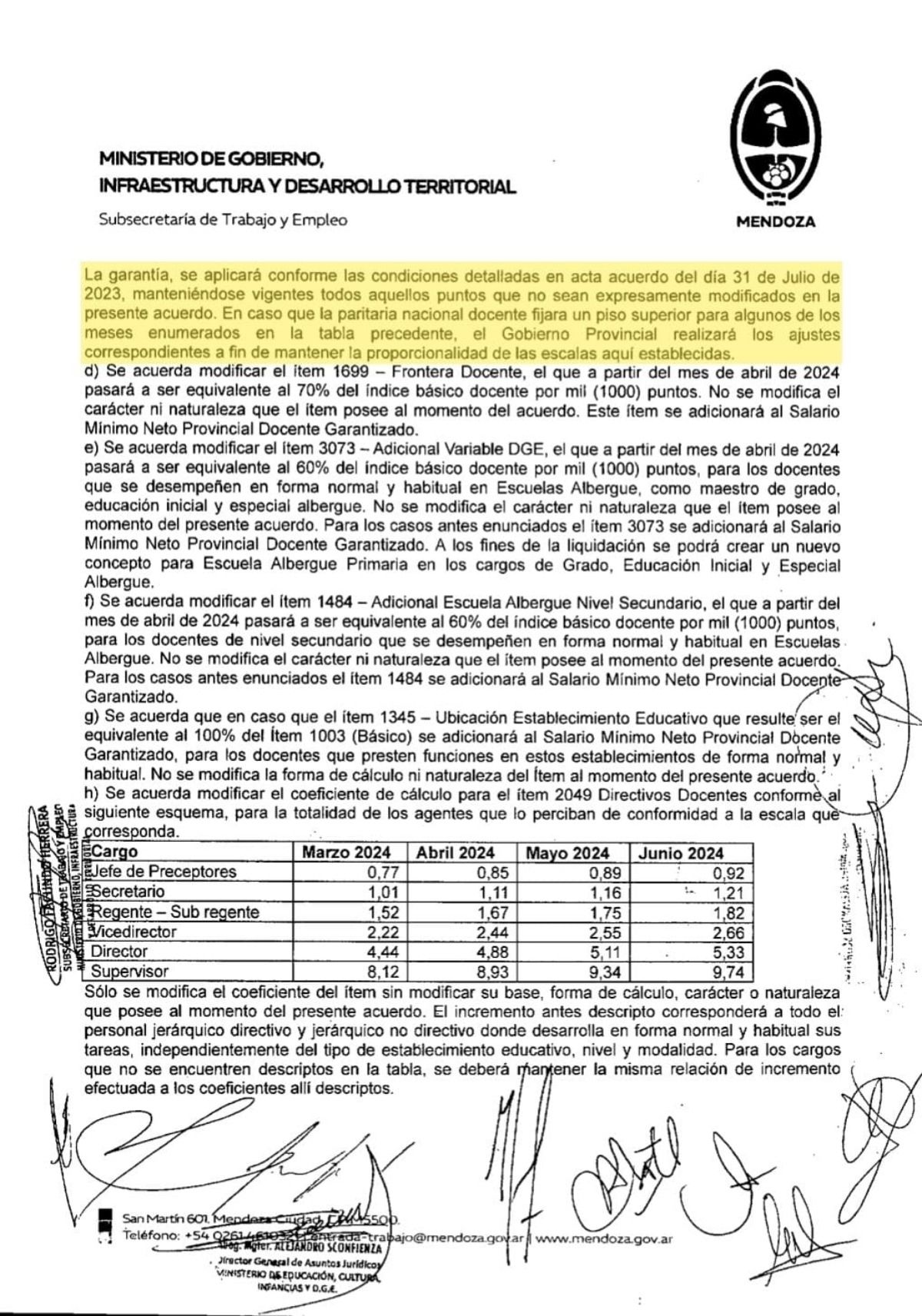 El gobernador Alfredo Cornejo avanzó con la decisión de otorgar una compensación salarial luego de que el gobierno nacional fijara a través de la resolución 689/2024 un nuevo salario mínimo docente para el cargo de maestro, jornada simple, sin antigüedad o su equivalente en horas cátedra.