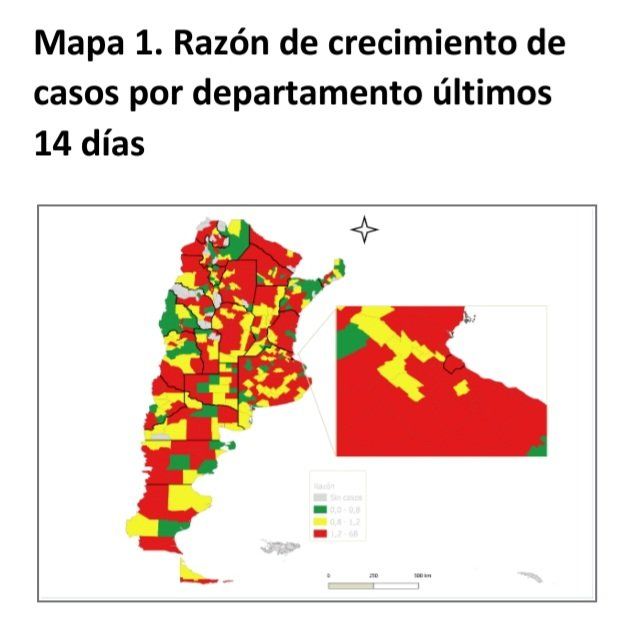 "Hoy en Argentina, 16 jurisdicciones presentan al menos un departamento con una situación epidemiológica de alto riesgo, con un crecimiento de casos superior al 20% en los últimos 14 días y una tasa de incidencia que supera los 150 casos x 100 mil habitantes", explicó el ministro de Salud y añadió: "Estos departamentos concentran el 49,7% de la población total de nuestro país. La mitad de los argentinos hoy se encuentran en zonas de alto riesgo sanitario".