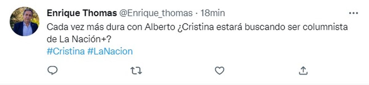 El mensaje se sumó a una contradictoria saga en la que el oficialismo metió, en pocos días, tuits analizando los dichos de un farabute que participa en Gran Hermano e información destacando algunas señales positivas en la economía. De todo, como en botica.