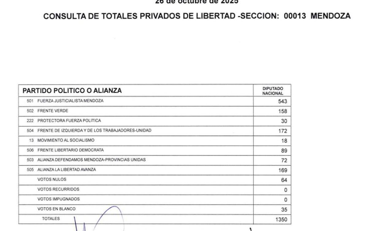 Una amplia mayoría de los presos de Mendoza votó por el peronismo en las elecciones legislativas del domingo. Más del 40% de las personas privadas de libertada habilitadas para participar de los comicios se inclinó por Fuerza Justicialista Mendoza.