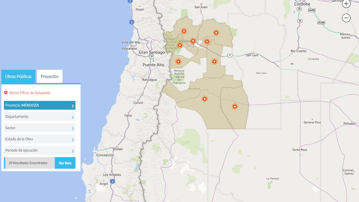 En el caso de Mendoza aparecen 20 obras públicas por un monto de $13.459.448.433, y además hay 34 proyectos en carpeta por $931.630.846.