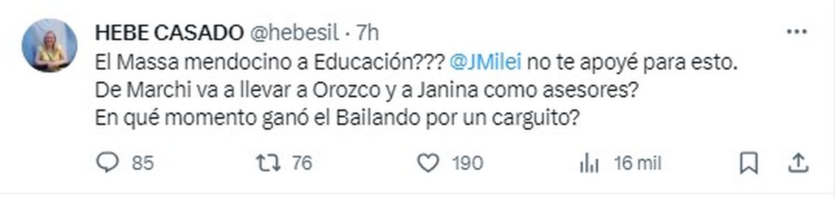 De Marchi sonó como posible funcionario de Milei y Hebe Casado le tiró con todo
