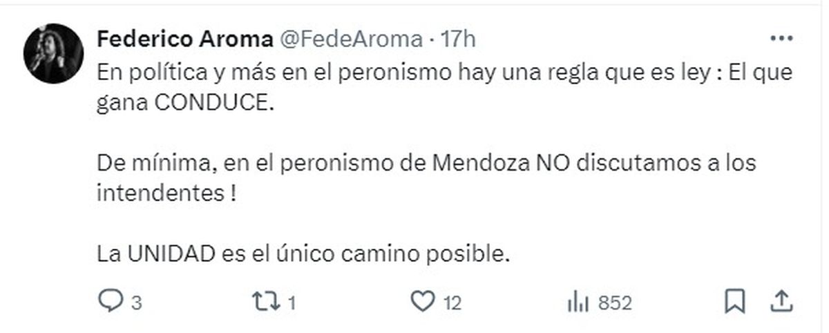 En efecto, Federico Aroma, uno de los alfiles del municipio, salió a pedir unidad: