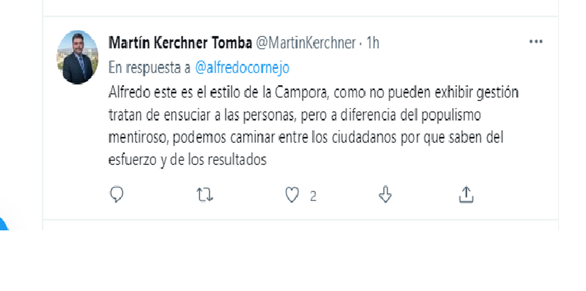 inmediatamente salió uno de los soldados más fieles que tiene Cornejo, Martín Kerchner, el presidente del bloque radical en el Senado. También por Twitter, hizo su aporte a la discusión.