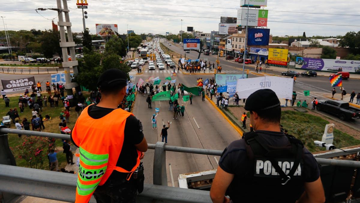 Las organizaciones sindicales y sociales se concentraron en el Nudo Vial de la Ciudad de Mendoza. Pasado el mediodía descartaron la posibilidad de marchar por las calles del centro.
