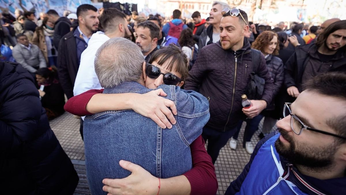 Mientras el Sindicato de Canillitas arrancaba el Himno nacional a capella, a metros de la Pirámide de Mayo, alguien pintaba en azul y amarillo sobre el Ministerio de Cultura porteño, lo que fue la sede del Gobierno de la ciudad, en la esquina de avenida de Mayo y San Martín: "Es nuestro milagro".