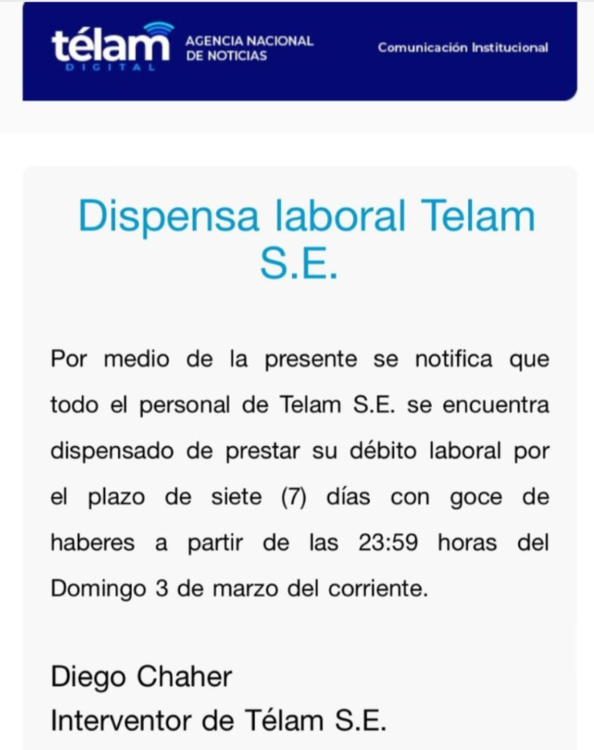 El cable "final" de Télam: