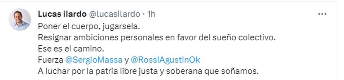 Su precandidato a vice, el senador provincial Lucas Ilardo -quien se enmarca en el kirchnerismo más nítido-, puso a su vez: