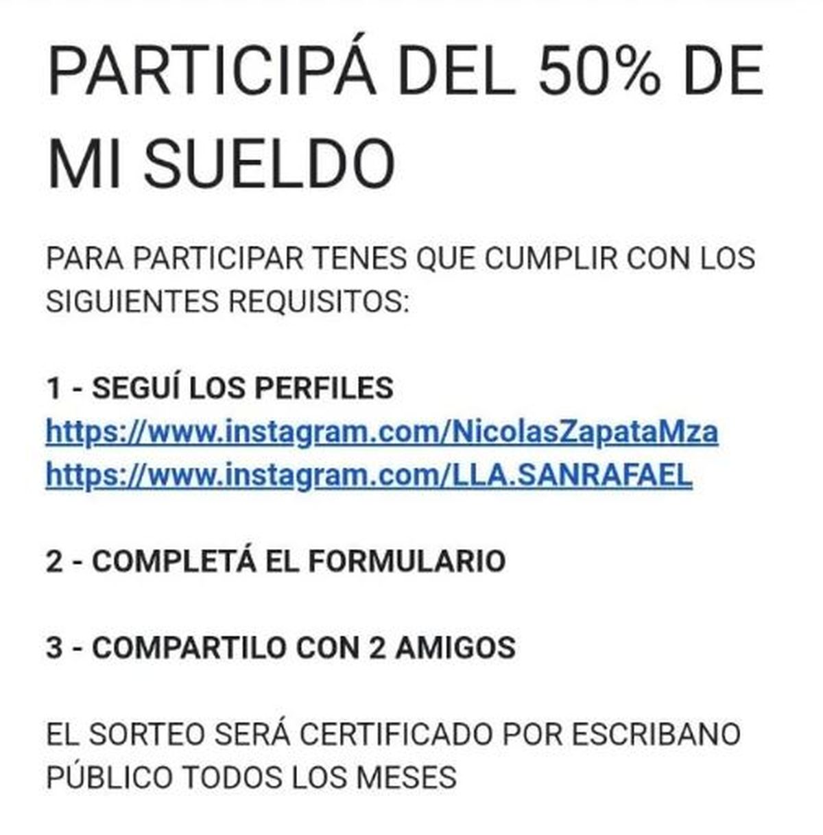 Los interesados en participar deben ingresar al perfil de Instagram del comunicador @NicolasZapataMza, seguirlo en sus redes y allí descargar un formulario en el que se deben cargar todos los datos.