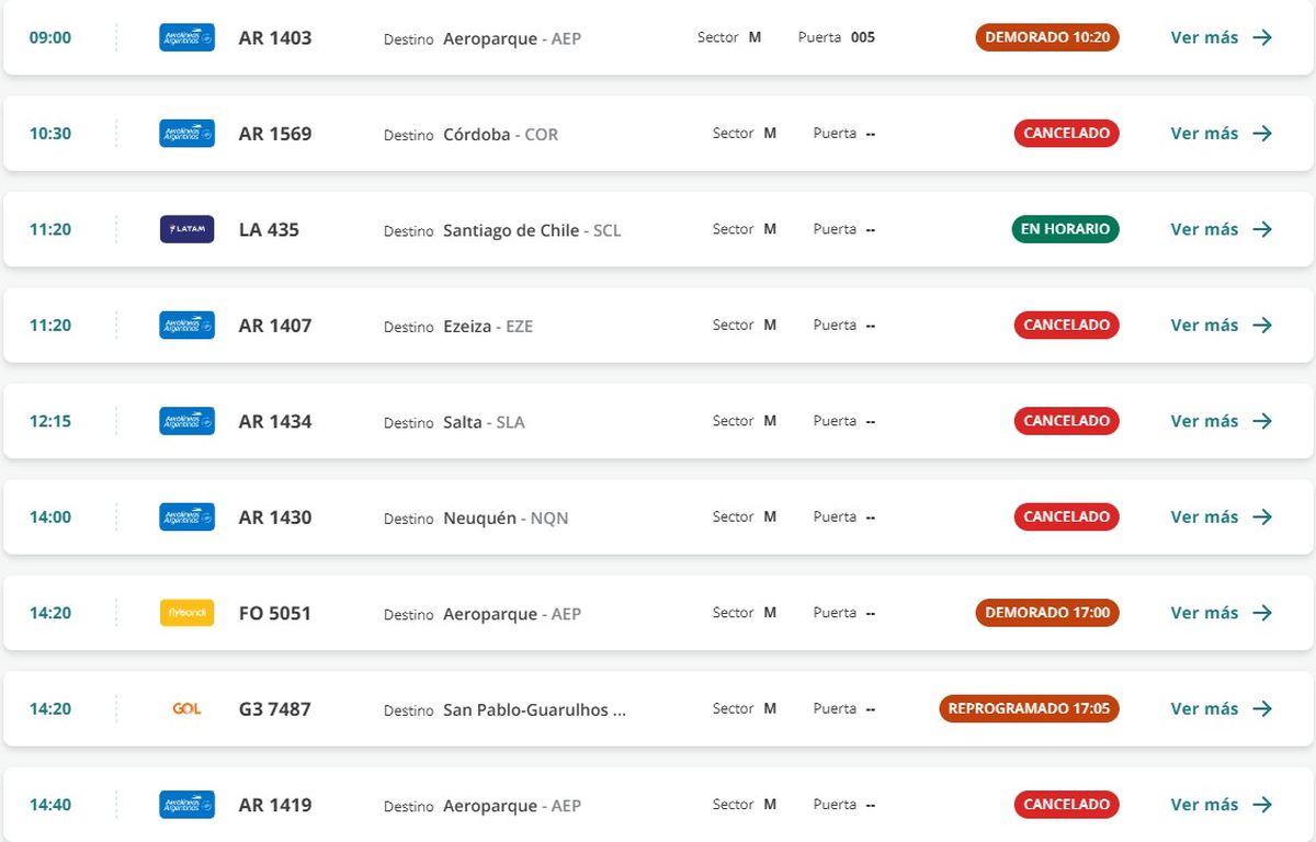 Para hoy estiman que en Mendoza a lo largo de la jornada se cancelarán 11 vuelos y se reprogramarán 10.