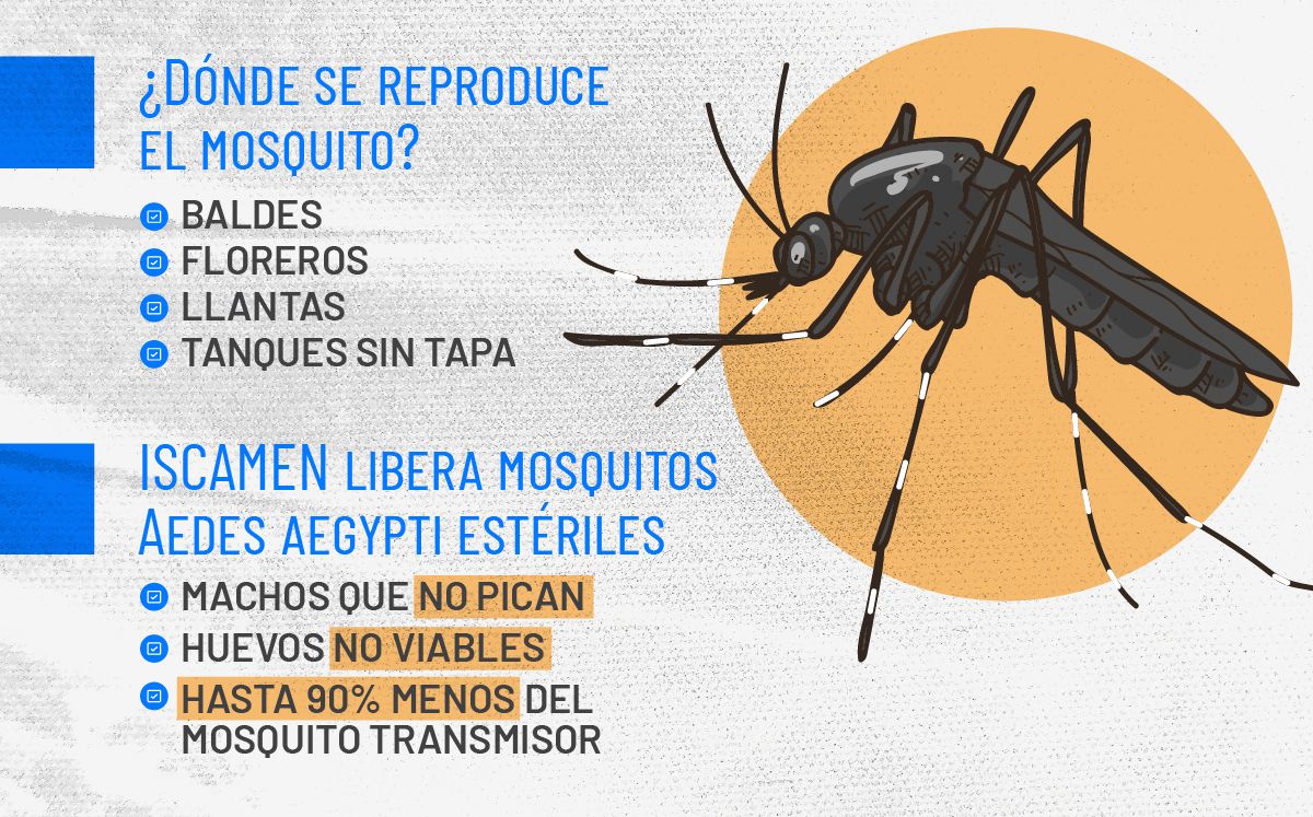 Esto significa que liberan a mosquitos machos estériles de Aedes aegypti, que no pican, pero se aparean con las hembras silvestres. De esta forma, el resultado son huevos no viables que reducen la población del mosquito vector.