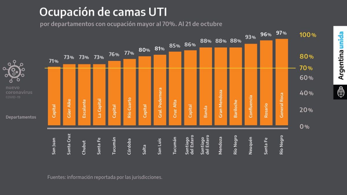 "En ocho provincias se concentra el 55% de los contagios de la Argentina", recalcó al referirse a la reunión que mantuvo el jueves con los mandatarios de esas jurisdicciones, entre ellos el mendocino Rodolfo Suarez. "Decidí concentrar el esfuerzo allí porque tienen la gran proporción de los casos. Notamos estrés en la atención sanitarios con el personal agotado y hospitales colmados. El nivel de saturación está al límite como en Neuquén, en General Roca, o en el Gran Mendoza. Y el problema es que se ha extendido a los ciudades cercanas", apuntó.