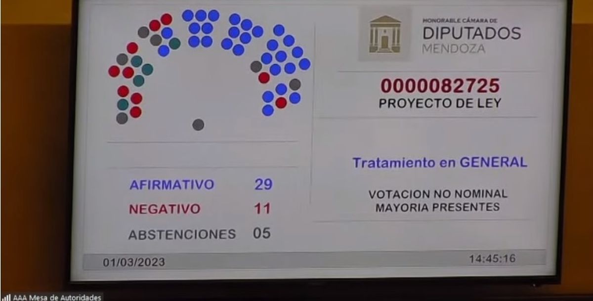En la Cámara Baja, los que votaron a favor de la iniciativa fueron 30 legisladores, tanto de Cambia Mendoza como del PJ. El presidente de la Cámara, Andrés Lombardi, no votó ya que solo vota si hay empate.