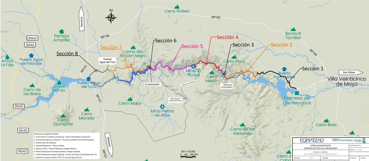 El Senado de Mendoza convirtió en ley el proyecto hidroeléctrico multipropósito El Baqueano, la sanción definitiva declara de utilidad pública y sujeto a expropiación una serie de inmuebles para el emplazamiento de las obras, yacimientos de material, caminos de acceso, servicios y líneas de energía que corresponderán al embalse y central hidroeléctrica.