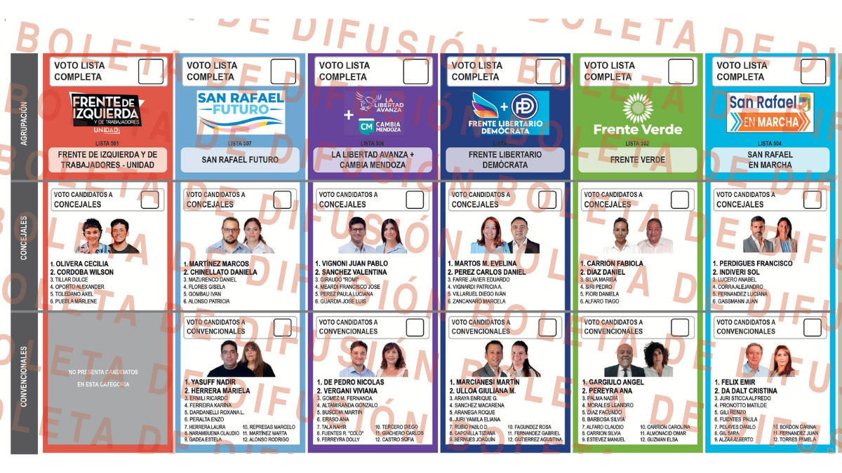En todos ellos se elegirán concejales pero las boletas de San Rafael tienen una particularidad respecto de las otras: también contienen una fila de candidatos a convencionales por espacio político.