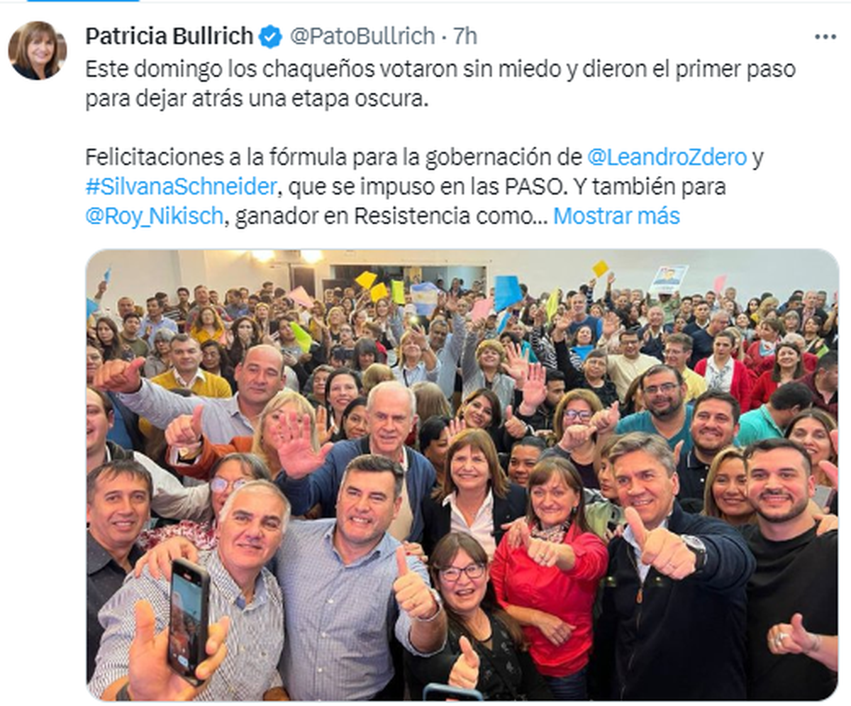 Dentro del Frente Chaqueño tuvimos una rotunda victoria, por lo que agradecemos el fuerte respaldo", destacó.