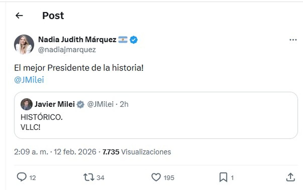 El presidente Javier Milei siguió muy de cerca las negociaciones en el Senado por el tratamiento de la reforma laboral y luego de lograr los votos, con la vigilia de su hermana, Karina Milei, Manuel Adorni y Diego Santilli se expresó en X.