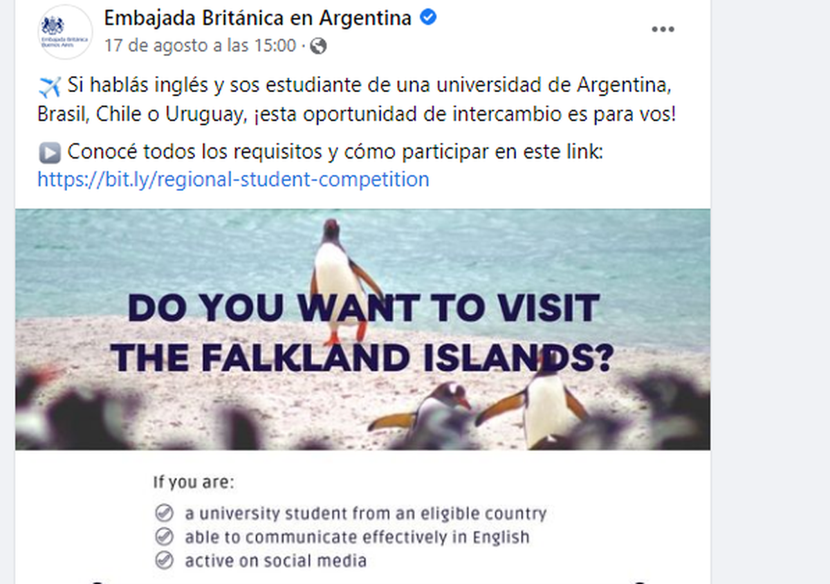 Un concurso organizado por la Embajada del Reino Unido en Argentina, causó mucho malestar en el gobierno, y la reacción del mendocino Guillermo Carmona, secretario de Asuntos Relativos a las Islas Malvinas, quien en un largo hilo de Twitter, repudió la acción.