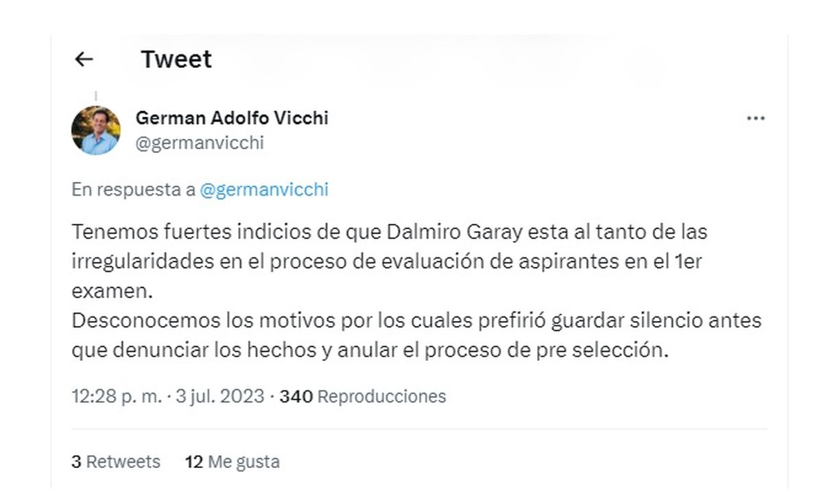 Vicchi no explicitó cómo realizaron las averiguaciones, pero aseguró que "tienen fuertes indicios" de que se filtró información del examen de ingreso al Poder Judicial. Estas sospechas están relacionadas con las personas responsables de operar la plataforma en la que se subieron los exámenes y que la duda tiene que ver con que se facilitaron los datos del examen a algunos de los que rindieron.