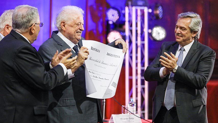 El presidente electo Alberto Fernández confirmó este martes que el médico sanitarista y cirujano Ginés González García se hará cargo del Ministerio de Salud. Fue durante la ceremonia en la que se le entregó un Doctorado Honoris Causa de la Facultad de Medicina de la UBA.