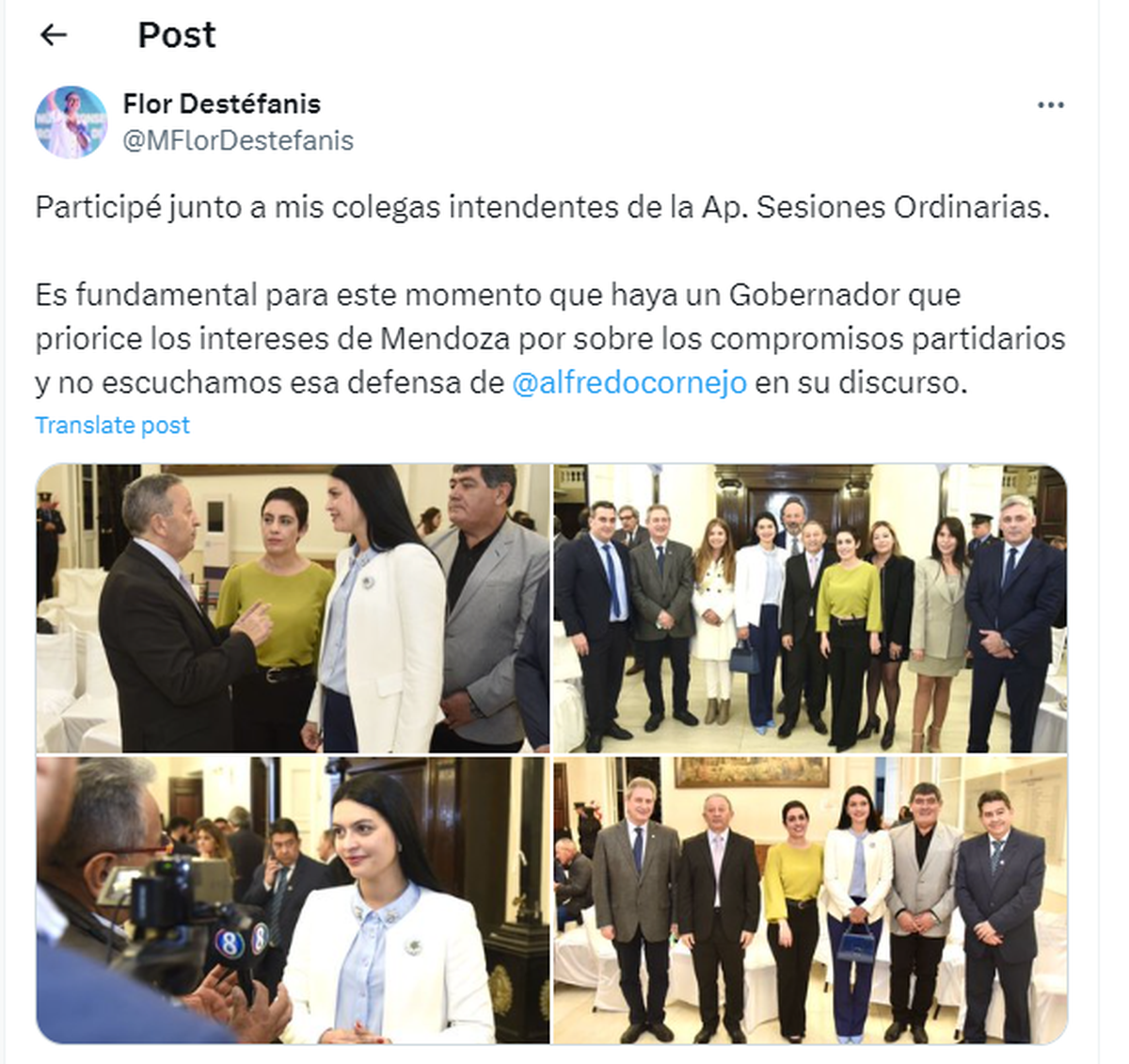 Destéfanis además dejó plasmada su opinión acerca de lo dicho por Cornejo, destacando que su defensa de los intereses de los mendocinos frente al gobierno de Javier Milei son insuficientes.