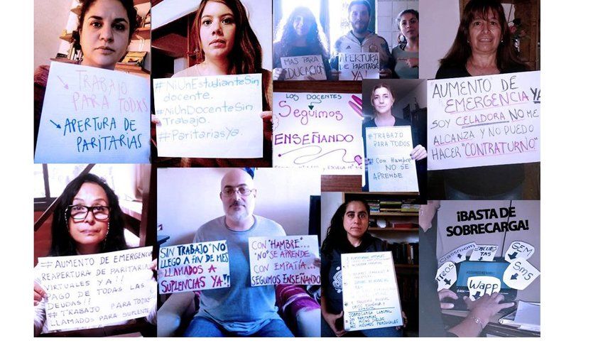 Saturados/as de tareas, pero sobre todo de exigencias ridículas, de informes y más informes, de tiempo y tiempo para pedirnos cosas que no corresponden y que no ayudan en nada a los/as estudiantes ni a nosotros/as. Angustiados/as y sin “vida propia”, porque nos consume hasta el tiempo del descanso y del cuidado afectando a nuestras familias, siendo que la mayoría somos mujeres; sin recursos, gastando el salario que no alcanza en los medios de trabajo (internet, computadora, celular, etc.) que el gobierno no nos da, cuando es su responsabilidad y encima persiguiéndonos cuando les ponemos un límite a su prepotencia e ignorancia sobre lo que nos está pasando. Hartos/as de su cinismo e insensibilidad: tenemos cientos/as de compañeros/as sin trabajo porque todavía no llaman a suplencias para cubrir horas y cargos vacantes y programas como Jornada Extendida, mientras nos presionan y amenazan a otros/as para ocupar esos espacios, gratis, con más sobrecarga. Llegan a la desvergüenza de convocar a nuestras compañeras docentes en Cambios de Funciones, para “proponerles” que cubran voluntariamente esas suplencias, atacando sus derechos y el derecho al trabajo de quienes están desesperadas porque no tienen cómo sostener a sus familias. Tampoco les importa el riesgo que corren celadores/as y directivos cada vez que los obligan a abrir las escuelas convocando sin protocolos de seguridad y sin elementos de prevención serios. No sorprende, entonces, que se hagan los desentendidos sobre la situación de nuestros/as estudiantes y la enorme desigualdad educativa que se profundiza, mientras pretenden sobrecargarnos a nosotros/as de la que es su responsabilidad como Estado.