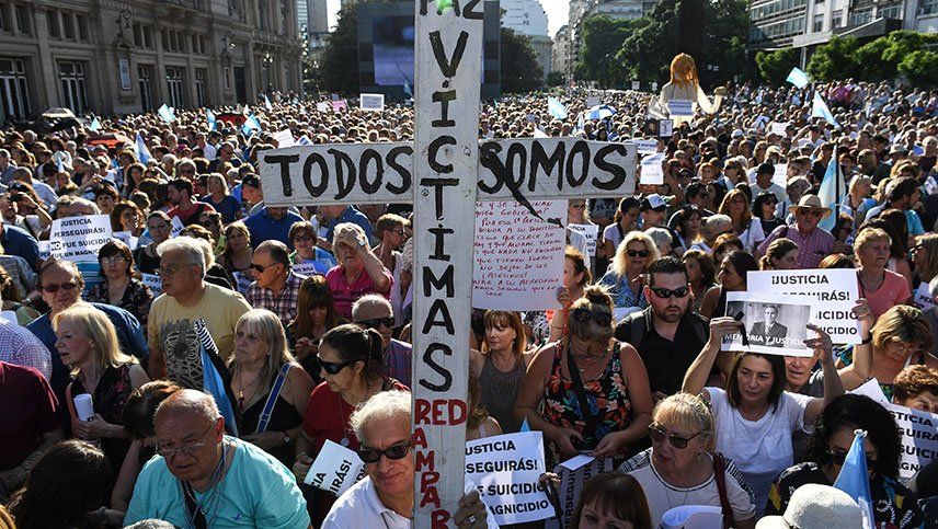 "Un hecho criminal de este tipo no puede ser interpretado fuera de contexto. Alberto Nisman anunció que iba a presentar pruebas contra la entonces presidenta de la Nación (Cristina Fernández de Kirchner) como principal encubridora de los responsables del atentado a la AMIA y, cuatro días después, apareció muerto", señala en unos de sus primeros párrafos el texto leído en la Plaza Vaticano